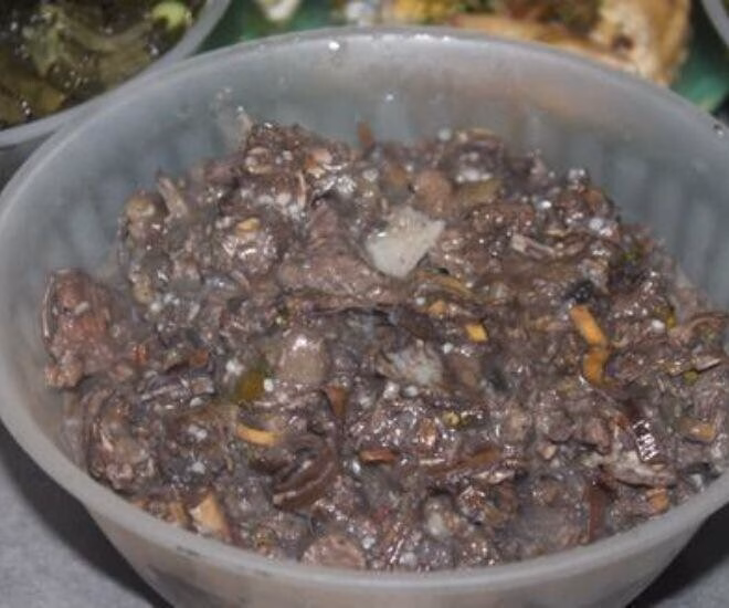 Món Kính Coong, hay còn được gọi là canh thịt thối, là một phần không thể thiếu trong đời sống văn hóa và ẩm thực của người Khơ Mú tại Sơn La. Đặc biệt, trong các dịp lễ trọng như cưới hỏi, Tết Nguyên Đán hay đãi khách quý, món ăn này luôn được ưa chuộng. Khác biệt hoàn toàn với những món ăn thông thường, Kính Coong được chế biến từ những miếng thịt gia súc đã qua quá trình phân hủy tự nhiên, mang theo mùi vị đặc trưng mà người Khơ Mú lại xem là tinh hoa. Đối với họ, thịt càng “thối” càng đạt chuẩn, và sự hiện diện của giòi trong quá trình này lại được coi là dấu hiệu của một nguyên liệu lý tưởng, góp phần tạo nên hương vị đặc biệt khó quên.