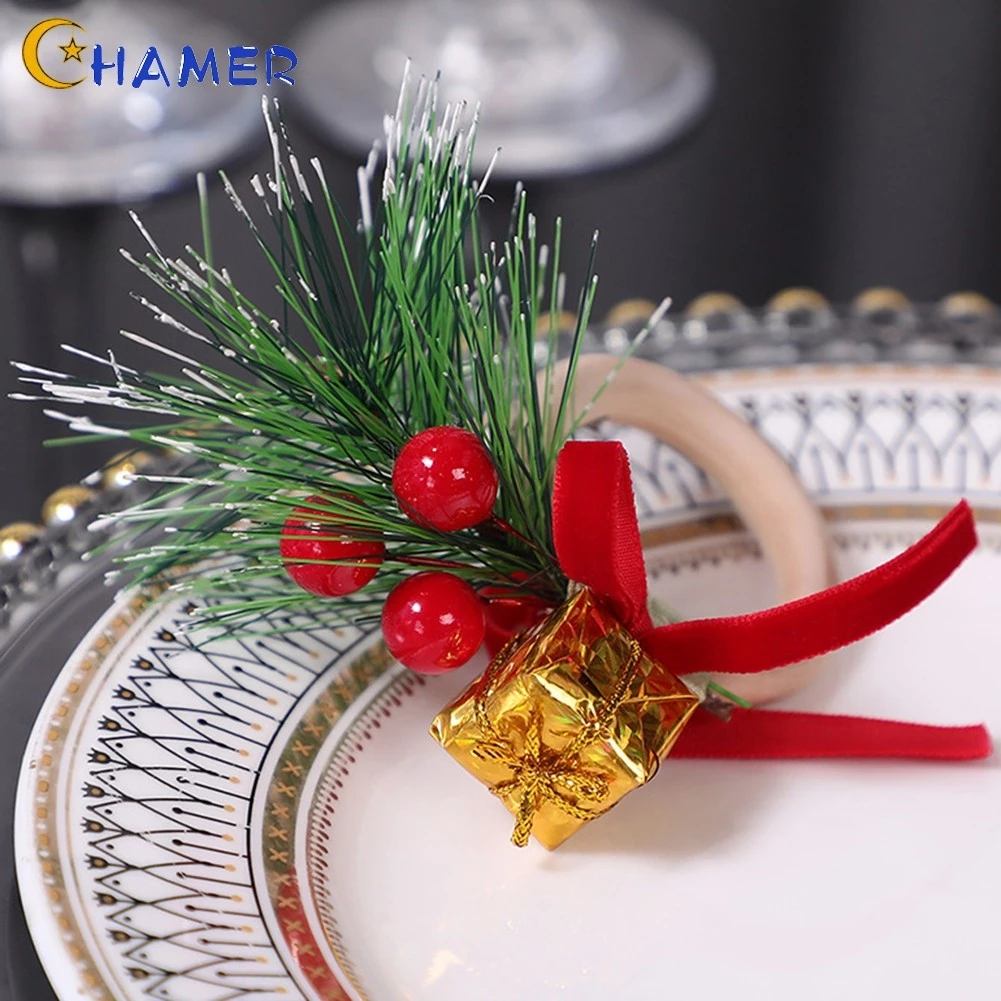 🔥 Nhẫn khăn ăn Giáng sinh 6 món lễ hội kèm vòi thông & quả mọng đỏ!❀ đang giảm giá!